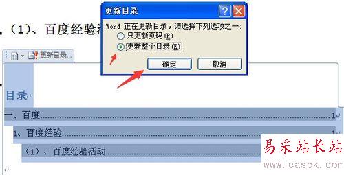 8、然后在彈出來的更新目錄設置中,選擇”更新整個目錄“,然后點擊”確定“按鈕。(如下圖)