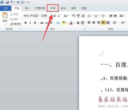 4、在這些標題都做好索引標記之后,再點擊左上角主菜單欄中的“引用”菜單。(如下圖)