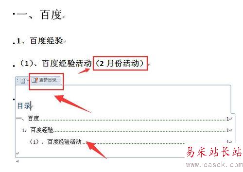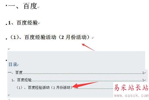 9、這樣就可以看到標題更新之后,自動生成的目錄也會自動更新了。(如下圖)