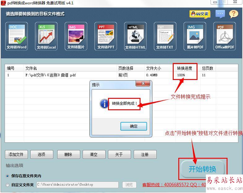 第四步,點擊軟件右下方的“開始轉(zhuǎn)換”按鈕對文件進行轉(zhuǎn)換,軟件轉(zhuǎn)換的速度非常快,用戶等待片刻即可。轉(zhuǎn)換完成后會跳出轉(zhuǎn)換完成提示,這時用戶就可以在設(shè)置的存儲位置找到轉(zhuǎn)換完成的word文件。
