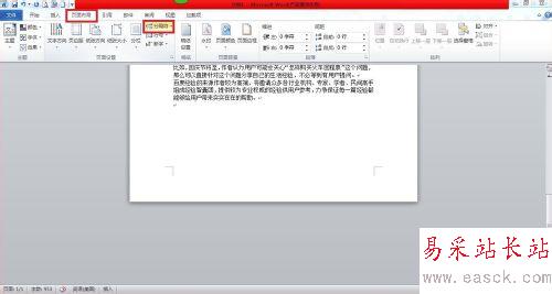 3、在“頁面布局”的選項卡上的”頁面設置“選項組中,單擊”分隔符“。