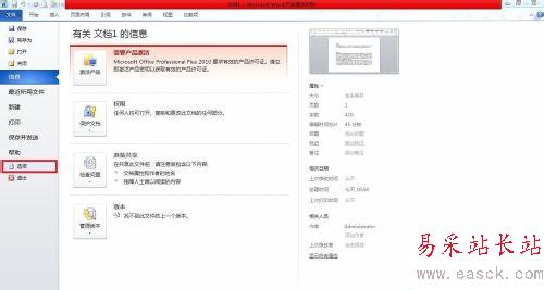 3、在后臺(tái)視圖中選擇“選項(xiàng)”命令。