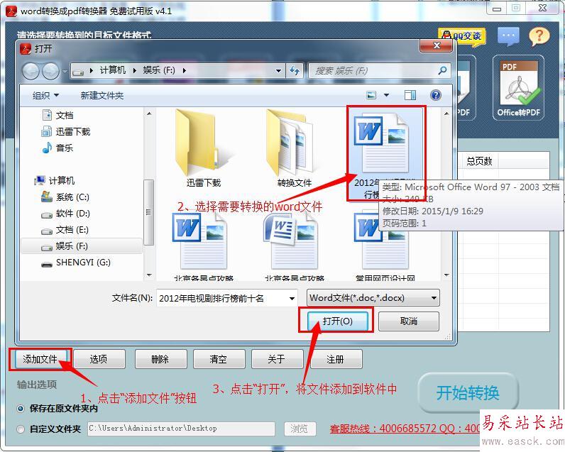 第二步:點擊“添加文件”按鈕,將需要轉換的word文件添加到軟件中。大家也可以不通過“添加文件”按鈕就將word文件添加到軟件中,大家只需要選定word文件,使用鼠標將其拖拽到軟件界面中,就可實現文件的添加。