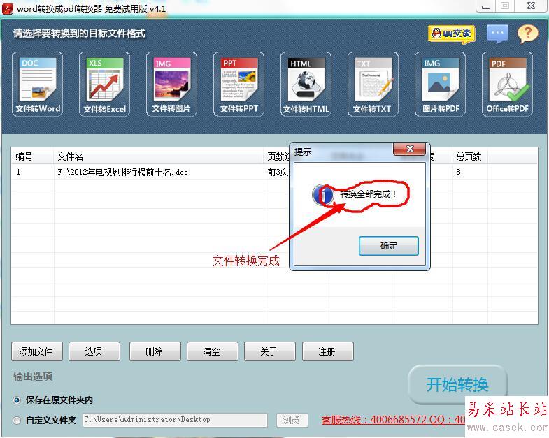 第四步:點擊“開始轉換”按鈕對添加的word文件進行轉換。如果文件不大,轉換片刻即可完成。