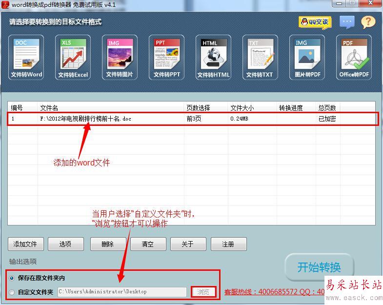 第三步:選擇轉換文件的存儲路徑。這個步驟用戶可以忽略,默認情況下軟件是將文件保存在桌面上。這里我們可以設置成保存在原文件夾,也可以通過瀏覽按鈕設置其他的保存位置。