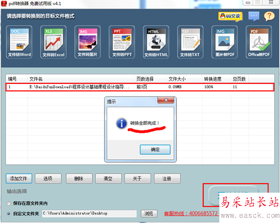 第三步,點擊右下方"開始轉換"按鈕,等待片刻即可轉換完成。