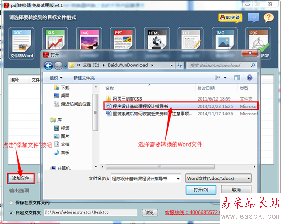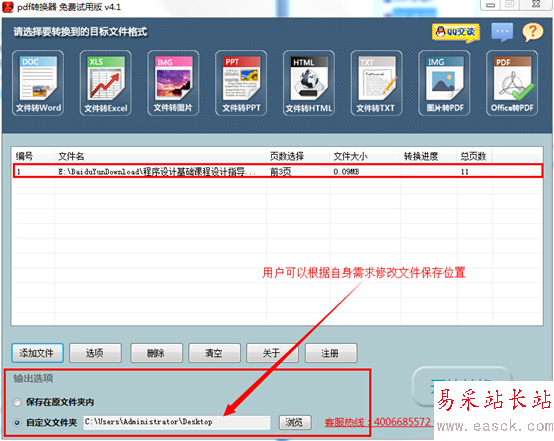 第二步,點擊左下角的的"添加文件",把需要轉換的文件添加進來,一次可添加多個文件。同時可以修改轉換后文件需要保存的位置。