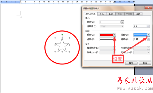 選擇顏色,紅色,如圖所示,選擇線型,寬度單擊確定