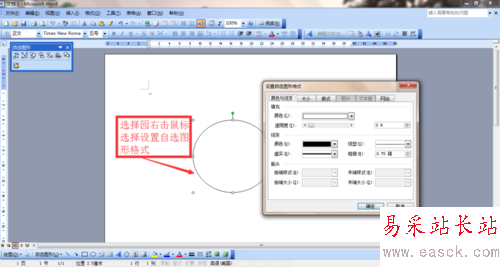 選擇圓,右擊鼠標(biāo),選擇設(shè)置自選圖形格式,如圖所示