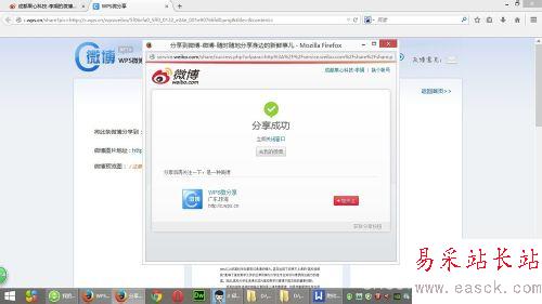第三步:在下拉框中選擇“分享到微博”,而后在網(wǎng)頁端就可以看到“WPS微分享”。