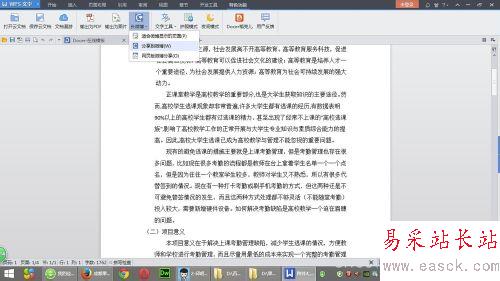 第二步:點擊word文檔菜單欄里的“特色功能”,而后再點擊“長微博”,這是就會顯示一個下拉框。