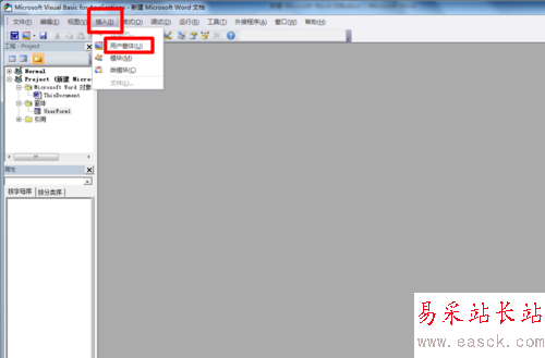 2、選擇“插入一用戶窗體”菜單,在窗口中就會插入一個窗體。