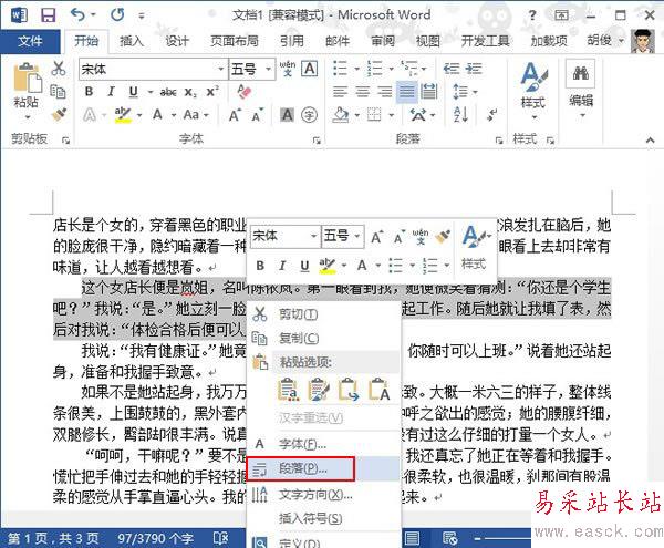 ①先將光標置于下一段第一行,也可以選中段落,右擊,段落,也會出現段落設置的界面。