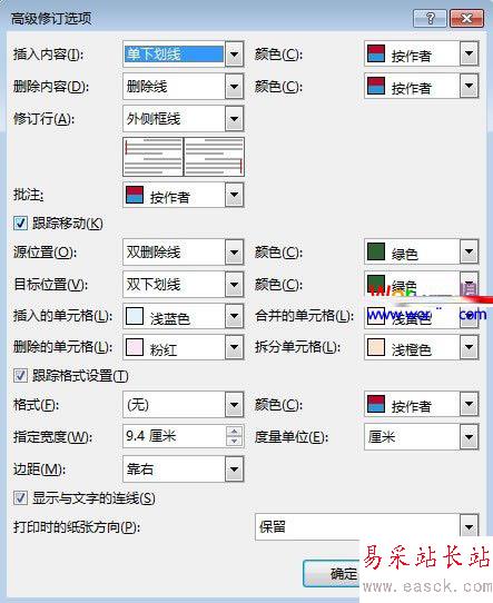 ③在高級(jí)選項(xiàng)修訂界面,設(shè)置顏色、度量單位等等,不同內(nèi)容的修改使用不同顏色,更加利于學(xué)生的查看。