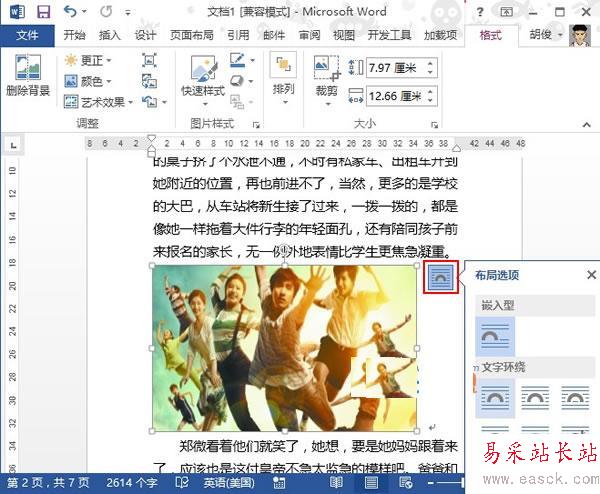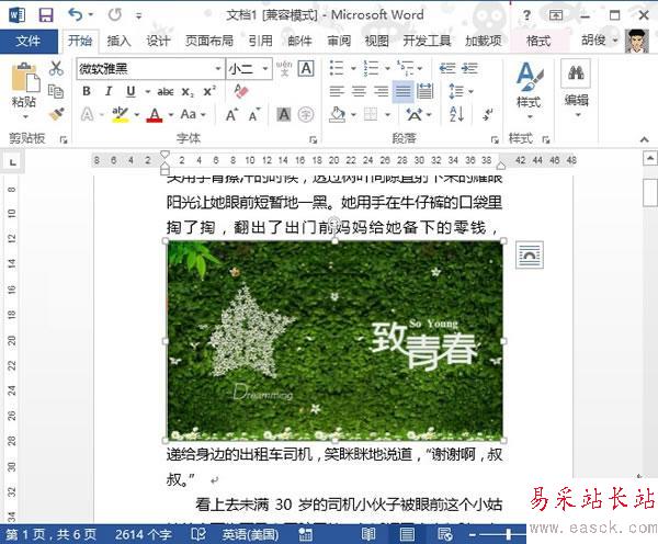 ⑥移動(dòng)圖片,四周的文字會(huì)環(huán)繞此圖,形成一個(gè)嵌入的樣子。