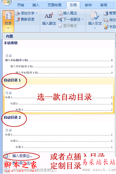 1、把光標移動到要插入目錄的位置,點開引用選項卡,點開左側目錄。選一款自動目錄。或者,如果需要對目錄的格式什么的需要加加工,可以點插入目錄。