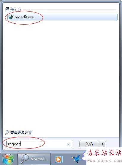 方法二、 打開系統左下方的“開始”按鈕,在“搜索程序和文件”中輸入“ Regedit ”,然后選擇“Regedit.exe”進入注冊表;