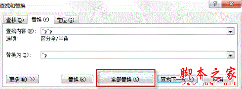 pc6小編在這里希望段落之間留下一行空行,刪除其它多余的。因此,可以在查找欄輸入^p^p,替換欄輸入^p,將兩行空行變成一行。然后,按全部替換按鈕