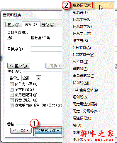 (如果您熟悉代碼/通配符,也可以直接在查找欄內輸入^p)