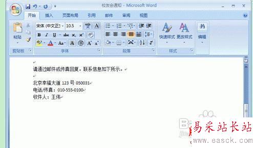 7、以同樣方式鍵入下面的句子并為地址、電話號碼和名稱行設(shè)置縮進。