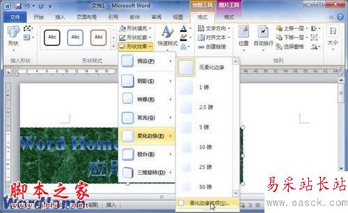 如果用戶希望更進一步設置柔化邊緣效果,可以在柔化邊緣效果列表中選擇“柔化邊緣選項”命令。