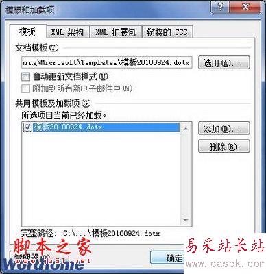 第4步,返回“模板和加載項”對話框,單擊“確定”按鈕應用當前設置,如圖4所示。