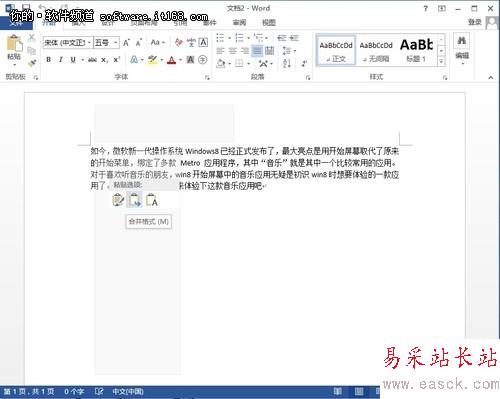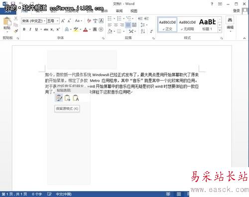 word 2013中,將鼠標停留在“保留源格式”時,在文檔頁面無需粘貼操作就可以直接預覽保留復制內容源格式的內容。