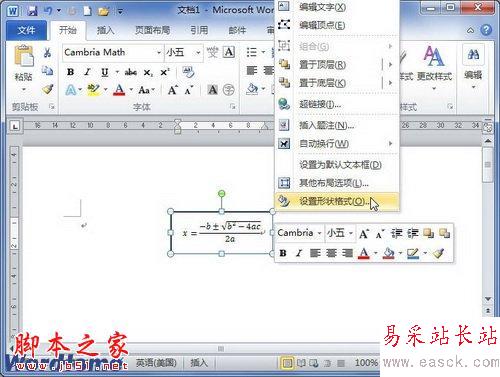 由于公式屬于嵌入式對象,因此它不能像圖片或剪貼畫一樣設置文字環繞方式,從而能夠在Word2010文檔中自由移動。不過用戶可以將公式放置在文本框中,從而間接設置其文字環繞方式,操作步驟如下所述: