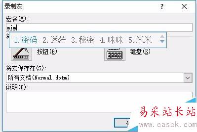 2、在彈出的宏窗口中,咱么給它命名為“密碼”