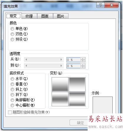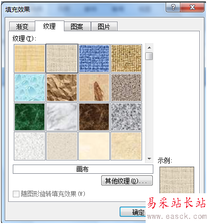 單擊之后會出現對話框,可以看到四種設置背景的方式,想用“紋理”做背景的話,單擊“紋理”。