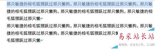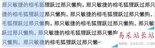將光標(biāo)移到文檔左側(cè),當(dāng)箭頭朝右時,雙擊鼠標(biāo),這時整段文字即被選中。