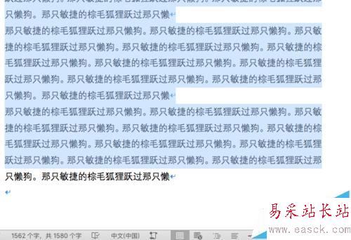 比如下面這個隨機(jī)生成的文本,我想選中其中的第一行到倒數(shù)第二行間的所有文字。