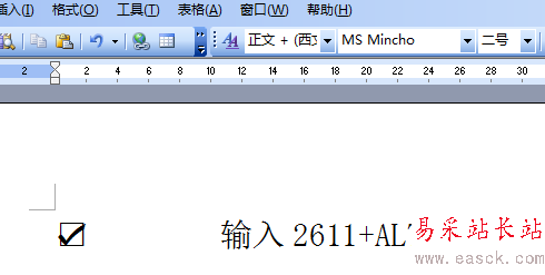 方法三:在Word2003中輸入數字2611 ,再按快捷鍵 ALT + X ,奇跡出現了,那四個數字變成了方框內打鉤符號。