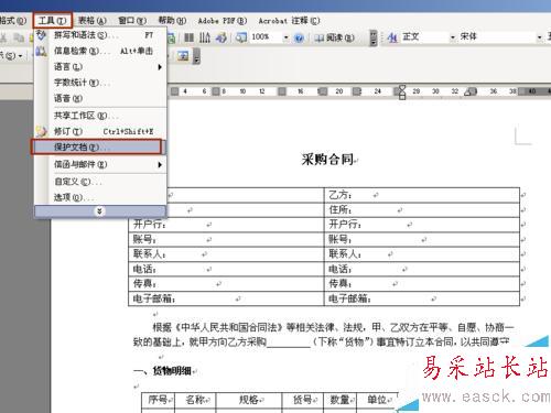9、如果需要修改固定條款,請“停止保護”后進行修改。