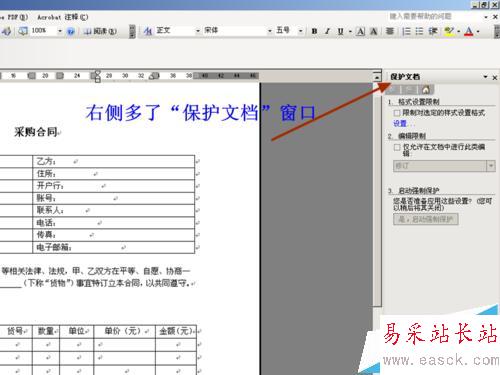 3、打開之后,在右側多出了一個“保護文檔”的窗口。