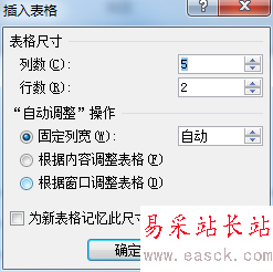 2、在打開的表格對話框中輸入我們需要的行數和列數,然后確認。