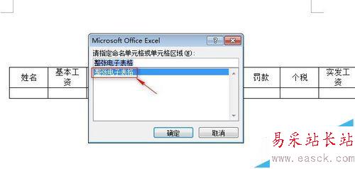 5、在彈出的“選擇表格”對話框中,選擇整張工資表,按確定按鈕。