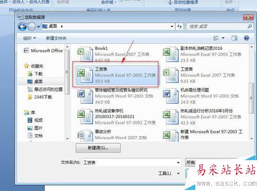 4、在彈出的“選取數據源”對話框中,選擇創建的工資表源文件,單擊“打開”按鈕。