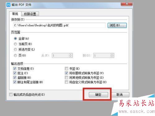 2、出現(xiàn)“輸出PDF文件”其他不用選,直接按“確定”,如圖所示
