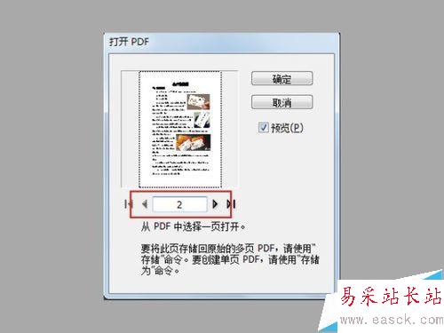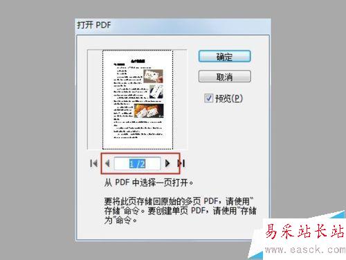 6、出現(xiàn)“打開(kāi)PDF”對(duì)話框,紅色框住的區(qū)域是Word文檔的頁(yè)數(shù),1就是第1頁(yè),2就是第2頁(yè),然后一頁(yè)一頁(yè)打開(kāi)在一頁(yè)一頁(yè)的保存,如圖所示