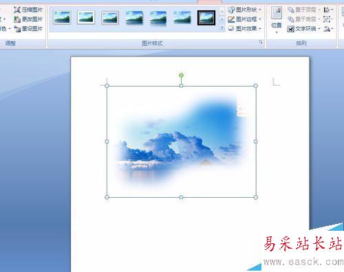 6、現在我們看到我們剛才添加的圖片已經有了邊緣羽化的效果了,是不是比原圖感覺好多了,那如果我們想把圖片改變個形狀怎么做呢?