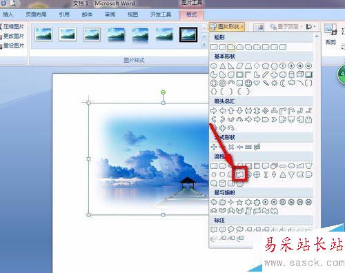 8、在彈出來的所有形狀里找到我們所需要的圖形形狀,點擊進行選擇。