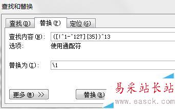 2、查找:([!^1-^127]{35})^13,替換:/1,記得選上“使用通配符”