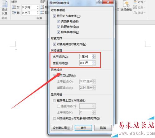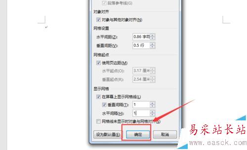 7、然后我們也是可以設(shè)置網(wǎng)格起點的,基本上來說網(wǎng)格默認(rèn)的起點都是頁邊距開始的,如果我們需要設(shè)置全圖的話,就可以全部設(shè)置成為0。有特殊需求就根據(jù)大家的需要來設(shè)置就可以了。最后我們點擊確定。