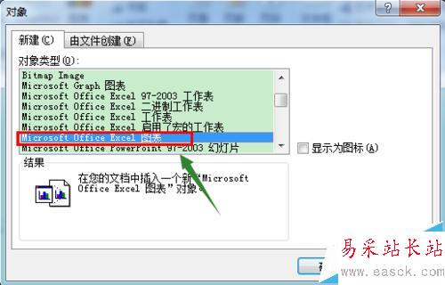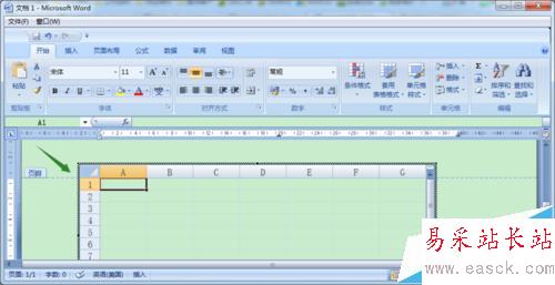 5、在該對話框里我們找到excel圖標選項,點擊確認以后返回到文檔正文,此時我們就會在文檔的最底部看到這種插入的表格了,見下圖;