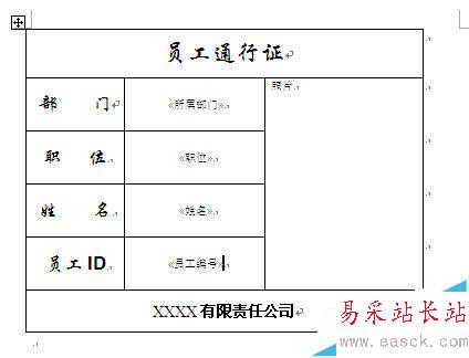 3、WORD中做好員工通行證或胸卡樣式表,如圖所示