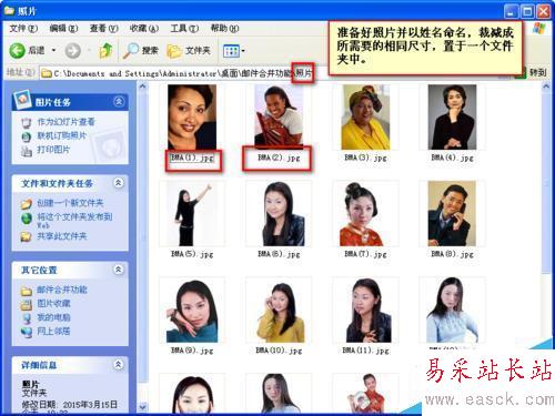 1、準備好員工照片,并利用圖像處理軟件處理成相同大小的,并以員工姓名命名照片,然后將這些文件放于一個文件夾中