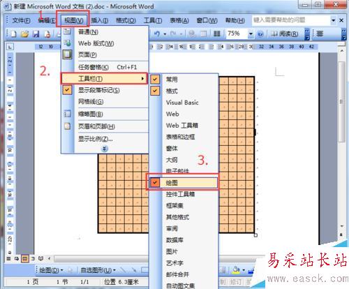 8、一個基本的棋牌就制作好了,可以開始設定9個星位,需要用到繪圖工具欄的橢圓形形狀,如果還沒調出繪圖工具欄,依次點擊視圖—工具欄—繪圖