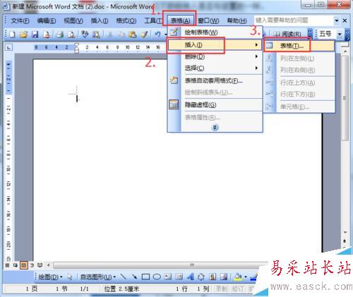 1、打開word軟件,首先先創建一個18行18列的表格,點擊“表格”,選擇“插入”,再點擊“表格”