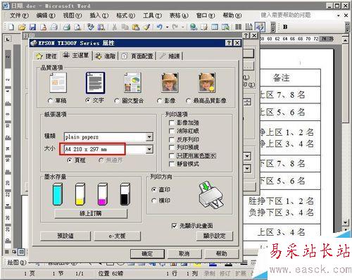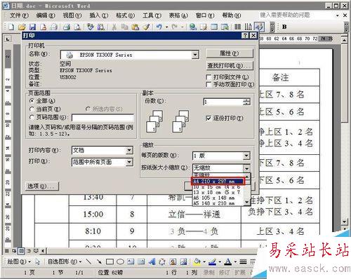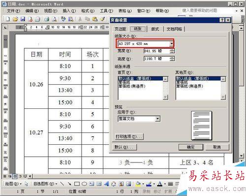 4、下面我們就一步步通過設置來直接將A3內容自動適應到A4打印紙上,首先是打印機設置,我們設置為A4紙張,然后將打印預覽選項選擇上;